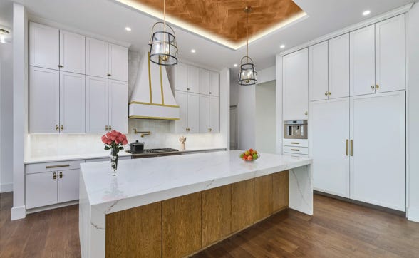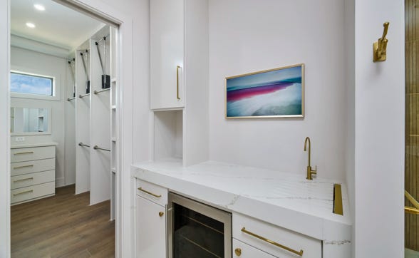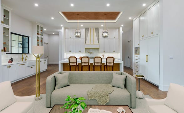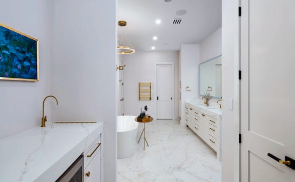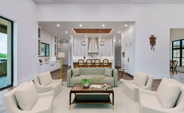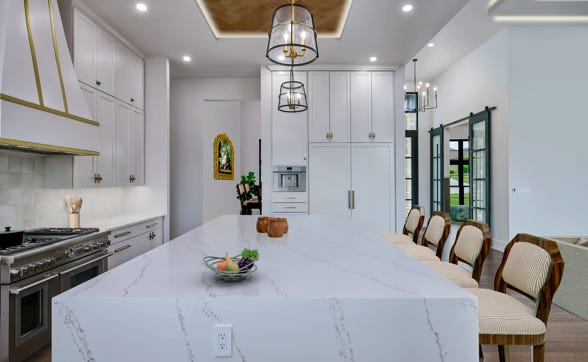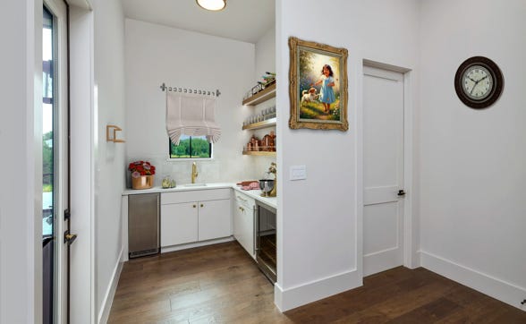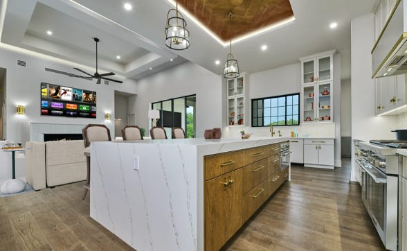 This elegantly designed, custom-built ABR home offers 4 spacious bedrooms and 4 full bathrooms on a private, expansive 1-acre lot. From the moment you step through the grand front entryway, you'll appreciate the sophisticated details throughout. The chef-inspired kitchen boasts top-of-the-line Thermador appliances, a 12-foot ceiling, a gorgeous waterfall island, under-cabinet lighting, and a separate prep kitchen and butler's pantry.