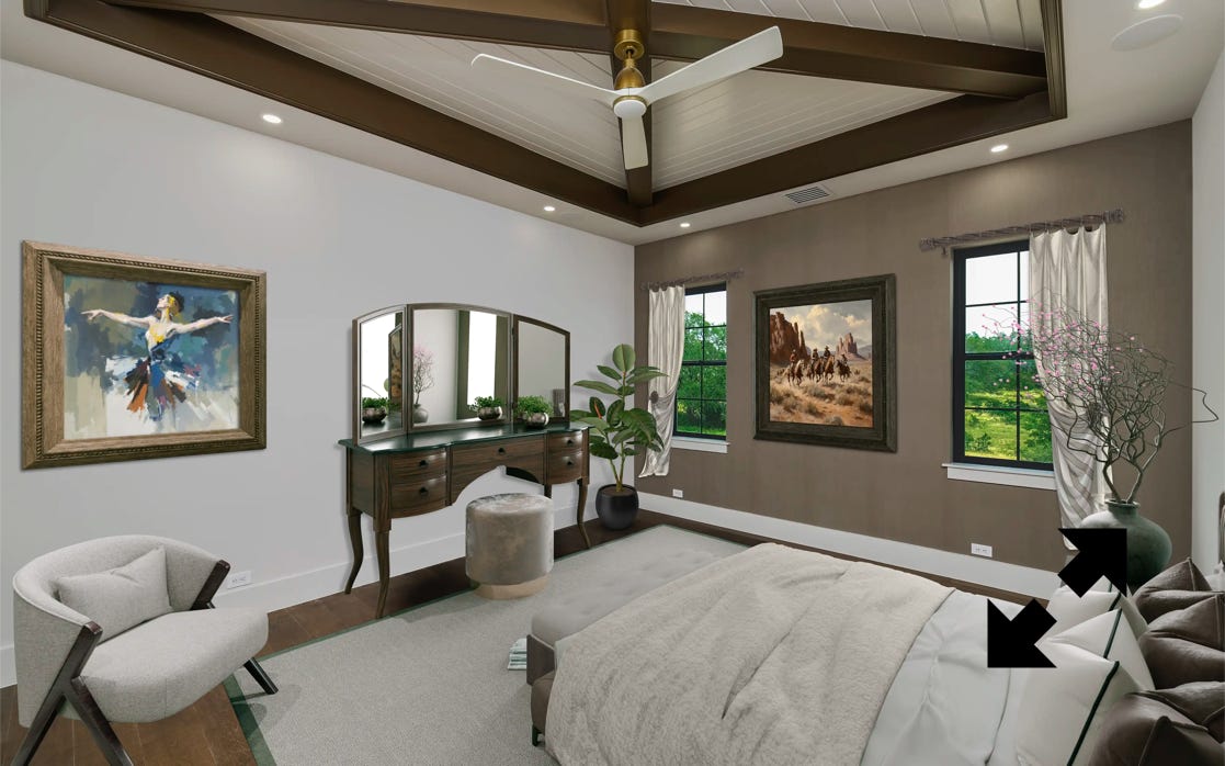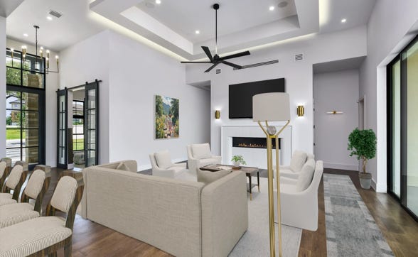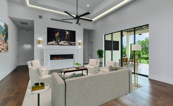 Enjoy indoor and outdoor culinary experiences with a Coyote grill on the covered patio and two propane tanks to fuel your outdoor kitchen and heating needs. Each room showcases tastefully chosen finishes by Twin Sisters Interior Design. Bedrooms feature soaring 12-foot ceilings, offering an airy, open ambiance. The home's thoughtful amenities include a gas fireplace, a tankless water heating system, and an aerobic septic system for efficient, modern living. Outside, you’ll find a circle drive with additional pad parking, a 3-car garage with an 8-foot entry door, and an electric car charging station.