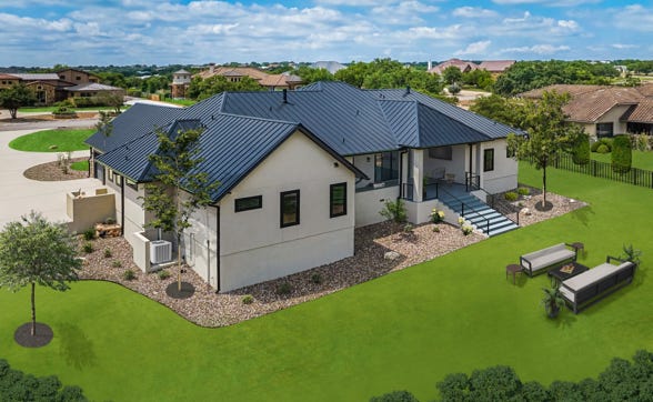 The exterior is adorned in pigmented stucco, blending seamlessly into the natural landscape. A full sprinkler package maintains the lush surroundings. This home also comes with a one-year builder warranty and a 10-year structural warranty, ensuring peace of mind for years to come. Embrace the best of Texas Hill Country living in this refined, perfectly appointed sanctuary in Vintage Oaks.