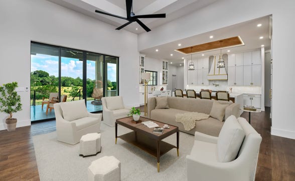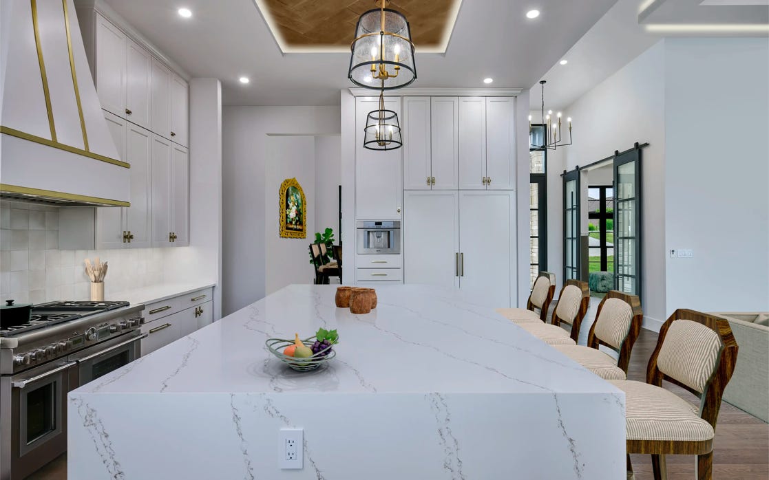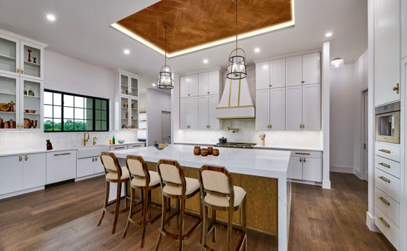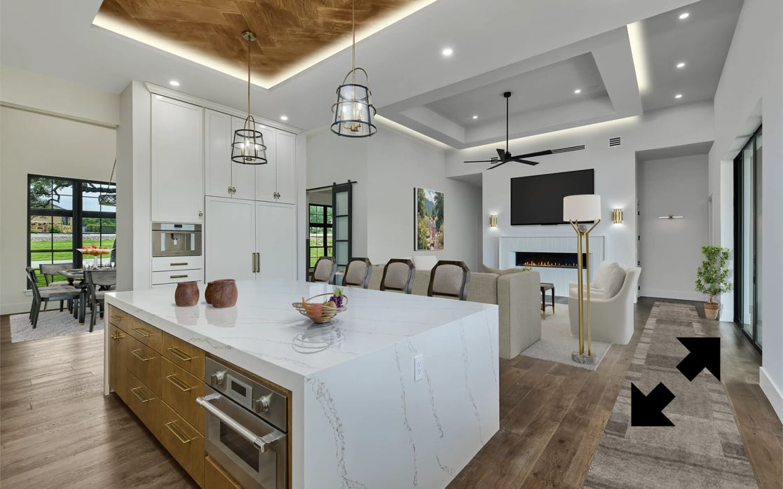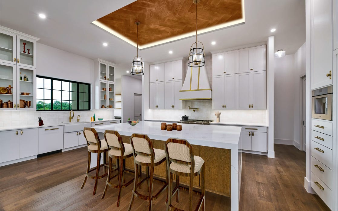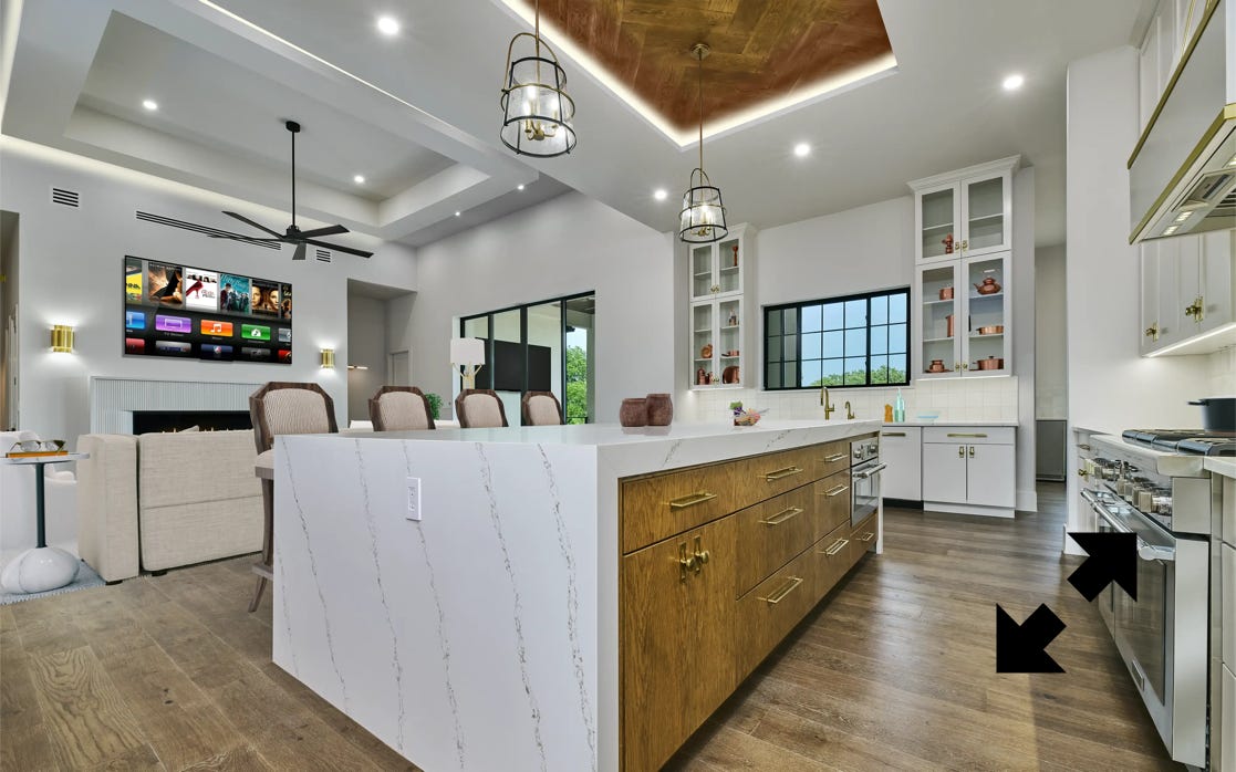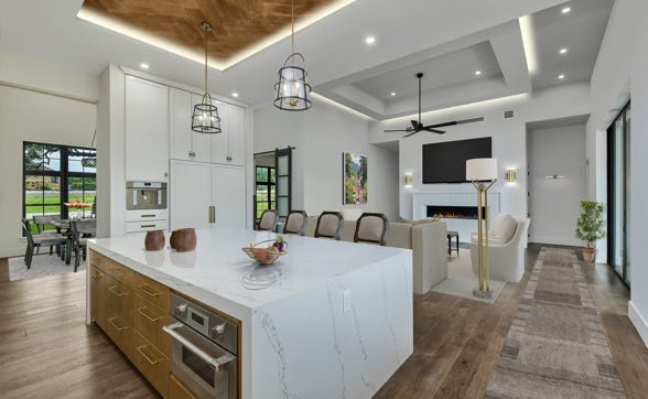 This elegantly designed, custom-built ABR home offers 4 spacious bedrooms and 4 full bathrooms on a private, expansive 1-acre lot. From the moment you step through the grand front entryway, you'll appreciate the sophisticated details throughout. The chef-inspired kitchen boasts top-of-the-line Thermador appliances, a 12-foot ceiling, a gorgeous waterfall island, under-cabinet lighting, and a separate prep kitchen and butler's pantry.